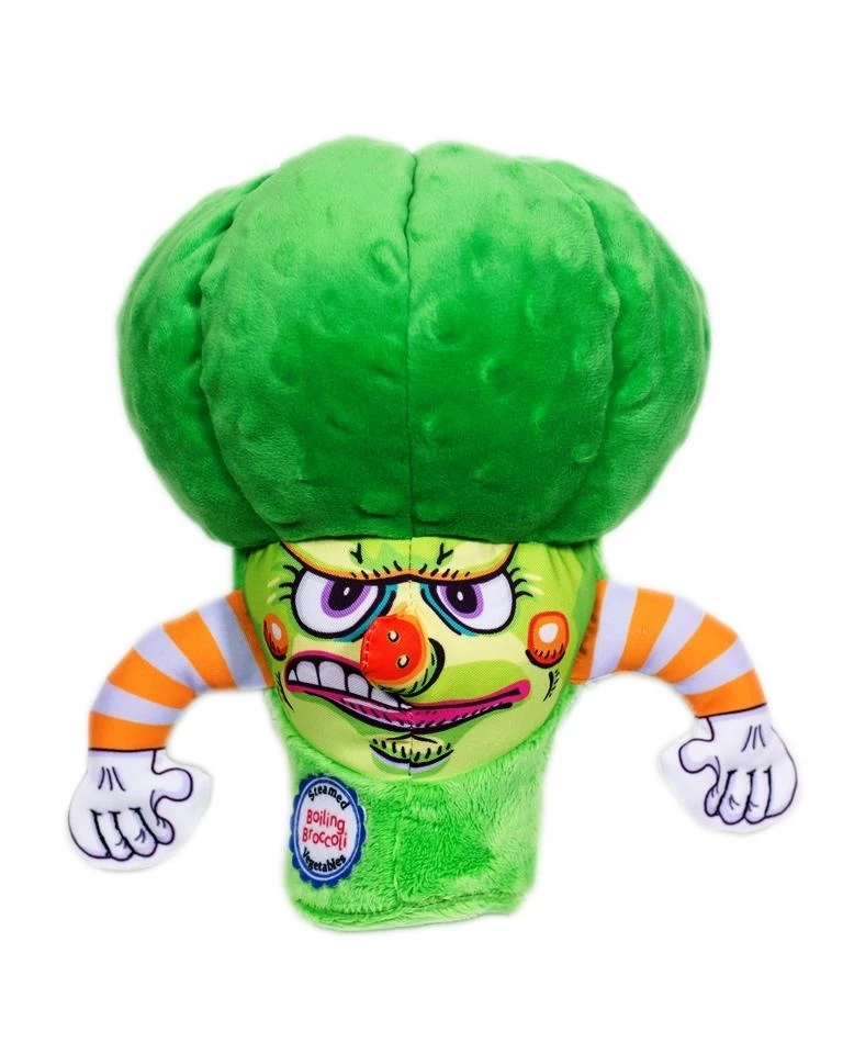 Fuzzu Steamed Vegetables dog toys are all fired up to play with your pup! The belligerent Boiling Broccoli is impossible to resist and your dog will get the recommended daily allowance of fun and frollicks with this mean and green hot head. He’s definitely ready for a melt-down! Boiling Broccoli is super soft and features an extra loud squeaker inside for hours of raucous playtime with your dog. Size: 8.5″ H x 8″ W.