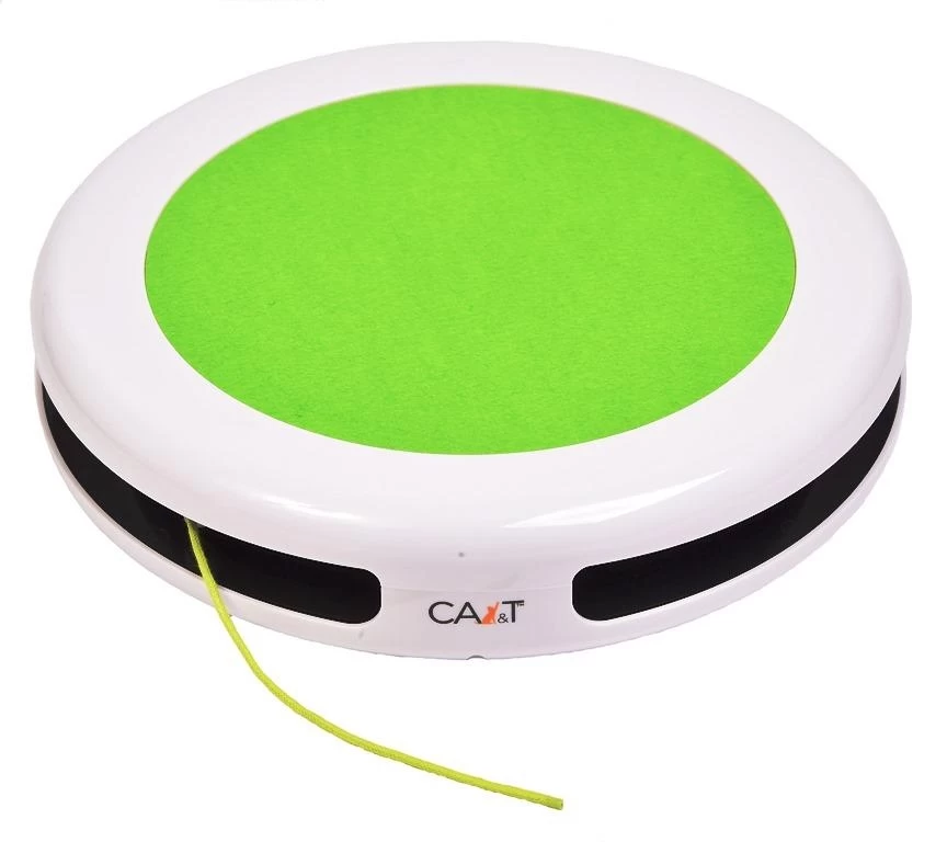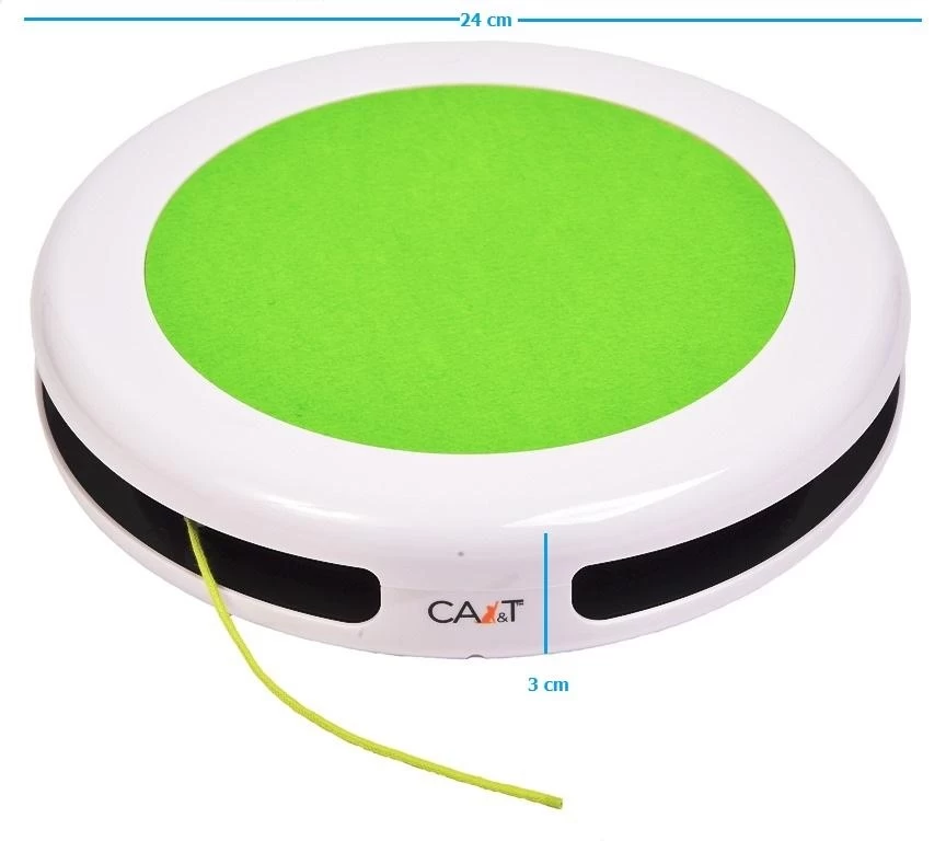The 2-Way Cat Teaser from CA&T is a high quality, innovative & interactive game for cats which allows practice of their natural hunting instincts.  Powered by batteries, the fast moving string within the game whips frantically in a random fashion in both directions, starting and stopping for your cat to chase. Made from ABS eco-friendly plastic with a robust construction, it features a top pad to sit on which is just perfect to stalk from. Size: 5cm x 24cm diameter. 3 x AA batteries required, not included.