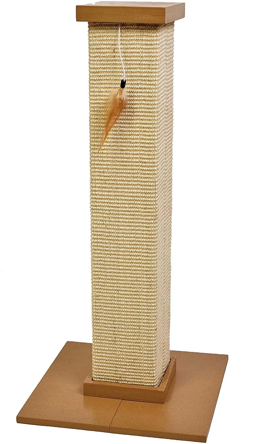 The CA&T Ultimate Scratch Post is just ‘purrfect’ for your cat to stretch up and scratch thus sharpening & maintaining their claws on the fibrous woven high quality Sisal plus toning their muscles at the same time. It can also be helpful in reducing stress and boredom. This fabulous, heavy and sturdy cat scratching post is made from varnished MDF in two parts for extra durability on the base and is easily assembled. Place anywhere in your house and your cat will soon be taking advantage of the great height to survey their surroundings. Dimensions: 16″L x 16″W x 32.5″H.