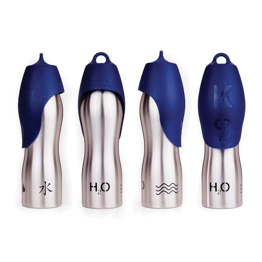 H2O4K9 designed especially for dogs on the go! Every dog needs water when out whether being exercised or at play keeping them hydrated. The patented lid has been designed to accommodate a dogs natural drinking style. Made from 18/8 food grade stainless steel with a toxin free Polypropylene screw top lid and a food grade silicone gasket to keep the bottles water tight.  This is a high quality, stylish yet functional product. H2O4K9 is 100% recyclable. These 25oz (700ml) bottles are designed for larger dogs and are all available in Stainless Steel (Silver) with 5 brilliantly colourful lids: Blue, Green, Orange, Pink and Yellow.  Why not choose a stylish yet practical Neosling bottle holder to match?