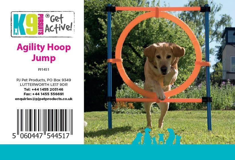 K9 Pursuits Agility Hoop Jump has been designed for both fun and professional agility.  Made from strong plastic, the set contains 2 posts, 1 ring, 2 crossbars, 4 supports, Velcro straps and fixings. The jump has adjustable height settings.  The K9 Pursuits Agility High Jump is quickly assembled and dis-assembled and is supplied in a convenient lightweight, zipped carry bag with a shoulder strap. When not in use it is easily stored. Great interactive fun, excitement and exercise for you and your pet for many hours!