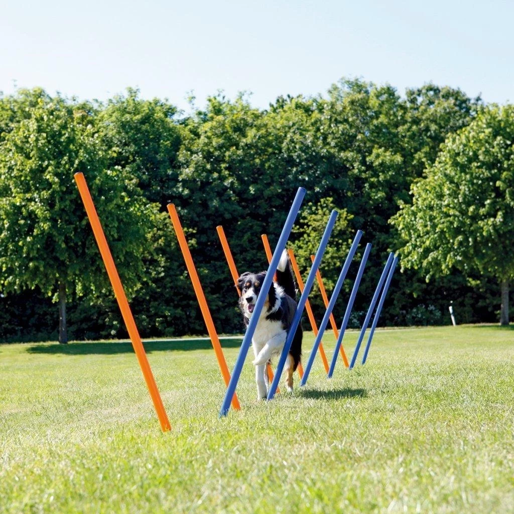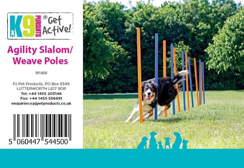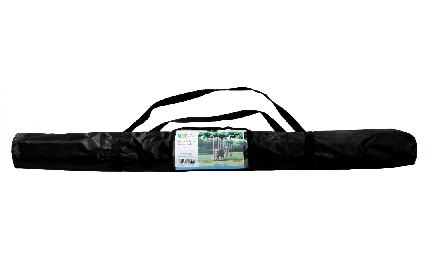 K9 Pursuits Agility Slalom/Weave Poles have been designed for both fun and professional agility. Made from strong plastic, the set contains 12 Slalom/Weave Poles and fixings. Multi layout patterns available. The K9 Pursuits Agility Slalom/Weave Poles are quickly assembled and dis-assembled and is supplied in a convenient lightweight, zipped carry bag with a shoulder strap. When not in use it is easily stored. Great interactive fun, excitement and exercise for you and your pet for many hours!