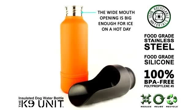 The K9 Unit is highly durable and is made from a 304 Food Grade stainless steel encompassed with a thick silicone outer shell for insulation purposes, helping to keep the water cool inside plus making the K9 Unit impact resistant, sound dampening and easy to grip. An extra wide neck to the K9 Unit dog water bottle easily allows the introduction of ice when needed, especially on hot days.