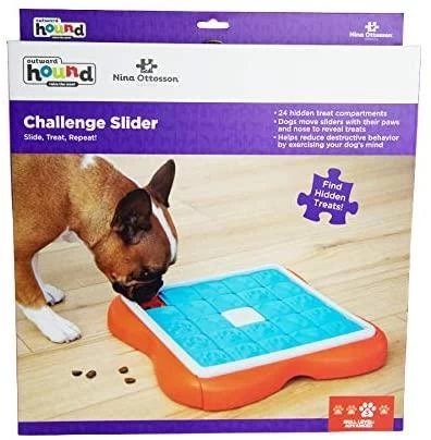Playtime Challenge – The ultimate exercise for learning and playtime, the Nina Ottosson Challenge Slider can be filled with treats to exercise your dog’s mind and strengthen the bond between you and your dog through interactive play.
