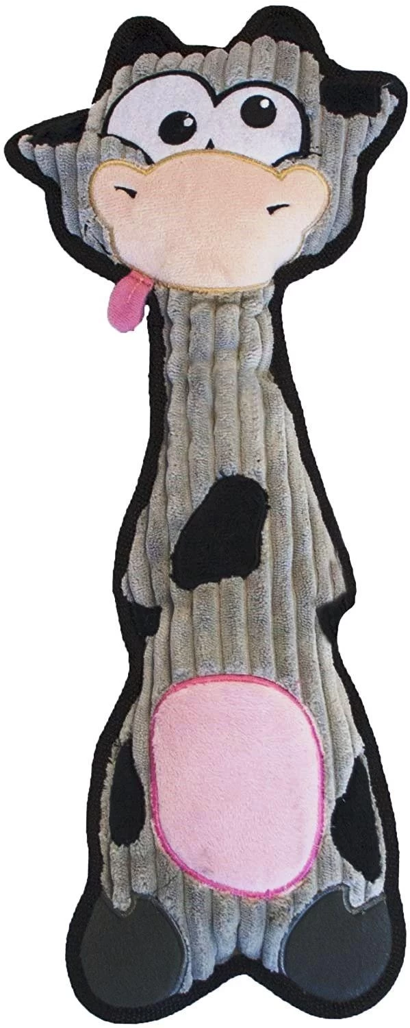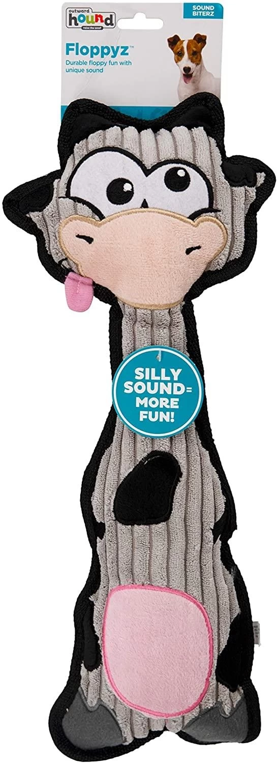 Silly sounds equal more fun with Outward Hound Floppyz Cow! This durable dog toy is made with unique and silly sounds that excites your dog with every flopping, shaking and tugging movement. Made with K9 Tuff Guard, a durable layer of material creates a protective shield whilst the material is soft enough to protect your dog’s mouth during play.  The Floppyz Cow emits a ‘moo’ sound when played with! Please note that this toy is not meant for aggressive chewers! Size 17.7″ H x 7.5″ W.