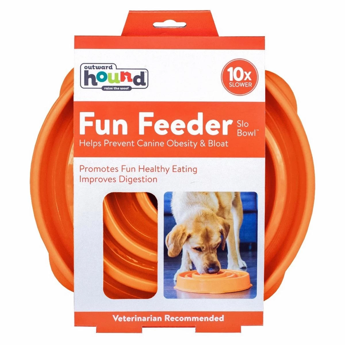 Outward Hound FunFeederĀ Slow Bowl is the ideal solution for dogs that gobble their food too quickly at meal times. The nature inspired designs using meal lengthening ridges and mazes help to keep dogs engaged for up to 10x longer during feeding. Ā This will therefore help to improve digestion, reduce the risk of bloating and regurgitation. TheĀ FunFeederĀ can also play a part in reducing canine obesity. TheĀ FunFeeder Slow Bowls are available in various colours and patternsĀ andĀ allĀ have a slip-resistant base to prevent sliding and thus food spillage.Ā Made from Food Safe ABS plastic, is top rack dishwasher safe and BPA, PVC & Phthalate free.