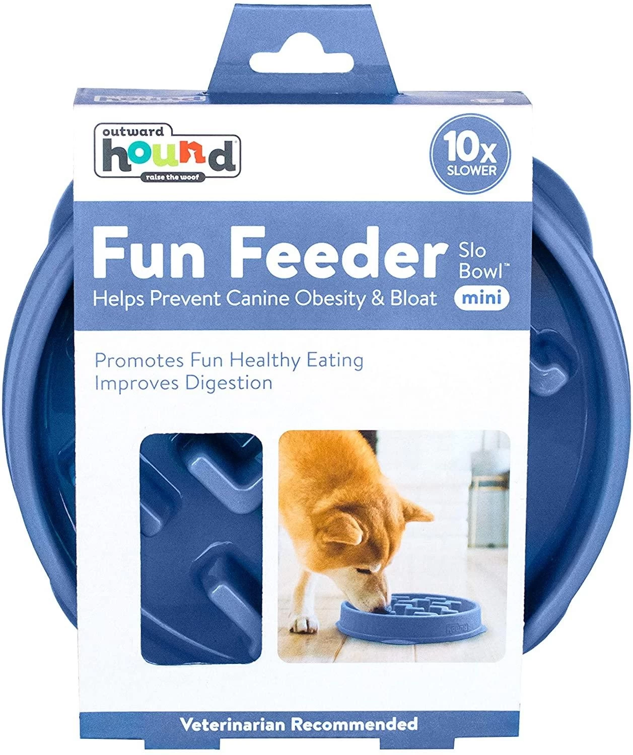 Outward Hound FunFeeder is the ideal solution for dogs that gobble their food too quickly at meal times. The nature inspired designs using meal lengthening ridges and mazes help to keep dogs engaged for up to 10x longer during feeding. This will therefore help to improve digestion, reduce the risk of bloating and regurgitation. The FunFeeder can also play a part in reducing canine obesity. FunFeeders are available in two sizes, large and small with various colours and patterns. They all feature a slip-resistant base to prevent sliding and food spillage. This healthy non-slip slow feeder bowl is made from Food Safe ABS plastic, is top rack dishwasher safe and BPA, PVC & Phthalate free.