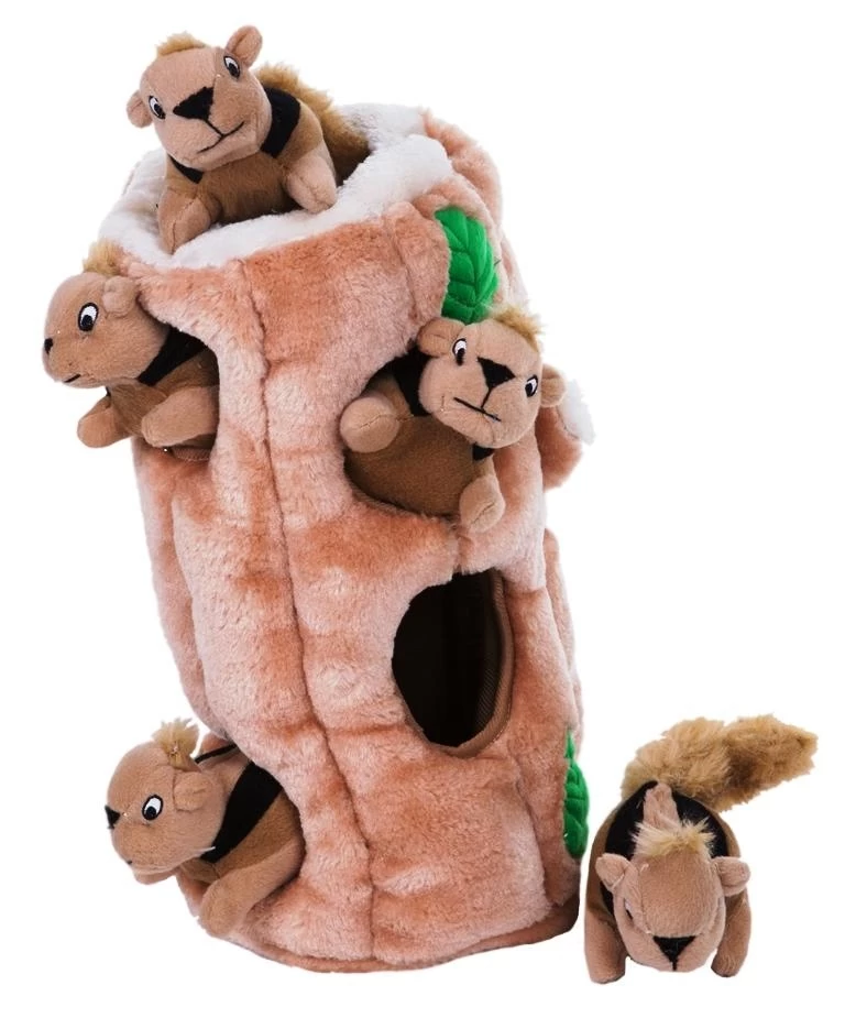 The Outward Hound Hide-A-Squirrel Extra Large comes complete with 6 Squirrels.  So what is more fun than chasing Squirrels round the park?  Chasing Squirrels in the comfort of your own doggy home of course! Finally there is a toy version of your Dog’s favourites pastime.  Just stuff the 6 squeaky Squirrels into the soft tree trunk and watch as your Dog pulls them out one by one.  To keep the game going just keep on putting them back in, time and time again and have a fun game of hide and seek.  These Squirrels just love to play! The Hide-A-Squirrel Extra Large is durably designed with an enagaging array of shapes, sounds and textures so your and your faithful friend can have hours of play time together.