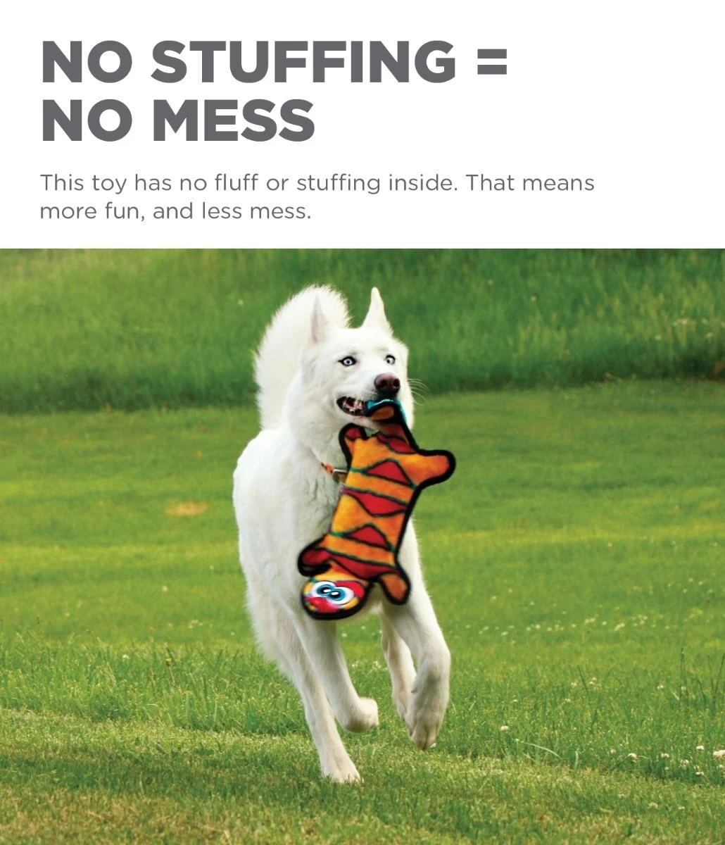 The Outward Hound Invincibles 4 Squeak Large Gecko is specifically designed for dogs that like to play rough. While still cuddly and cute on the outside, the Invincibles dog toys have a special Dura-Tuff inner lining and double layered outer seams to keep your pup’s new best friend in tact longer. The stuffing-free design reduces messiness and the multiple squeakers will keep your dog entertained even after they’ve bitten through. Super cute and a real must have for your dog’s toy box! Size: 17.5″ H x 8.5″ W.