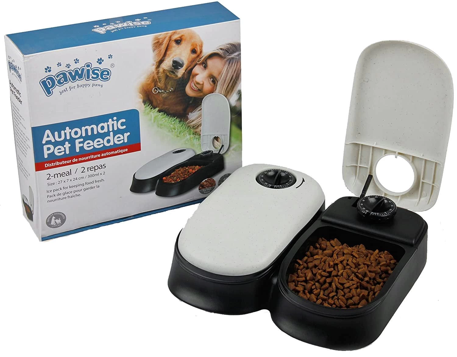 The PAWISE Automatic Pet Feeder Double allows you to schedule your pet’s meals in advance for convenience and peace of mind, especially if you are not going to be home in time. Easy to operate, fill the feeder trays with food and set the timer. For pets fed once a day, set the timer for 24 hours and 48 hours later. For pets fed twice a day, set the timer for 12 hours and 24 hours later. Or schedule to suit your pets feeding routine, Supplied with an ice pack for each tray helps to keep food chilled. A great way to manage portion control if your pet tends to over eat. Holds 1.5 cups of food in each tray Made from BPA free plastics. The tray compartments are dishwasher safe. Uses 1 x AA battery, not included. Size: L 9.4″ (24cm) x W 10.5″ (26.6cm) x H 2.7″ (7cm).