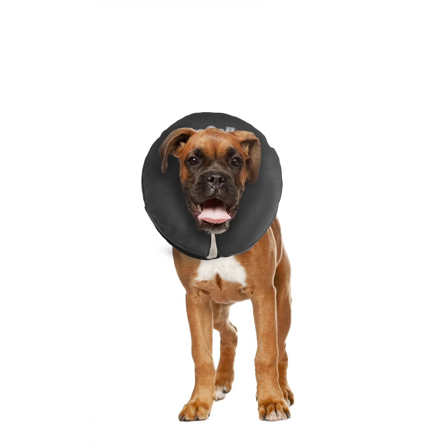 ProCollar Premium Recovery Collar for dogs and cats.  This unique product has been designed to replace the traditional Elizabethan (lampshade) collar which now firmly belongs back in the era from which which they were named after.  The ProCollar does not block your dog or cat’s vision and allows your dog or cat to stay protected after post-surgery wounds, injuries or rashes whilst being able to resume normal every day activities such as eating, sleeping and having fun! The ProCollar has an inflatable inner tube that is inflated through a two-way air valve. Once inflated, the ProCollar works a soft deterrent and almost becomes a portable recovery pillow! The inner tube is protected by a machine washable, lightweight and breathable yet durable canvas cover that resists bites and scratches. The ProCollar is held in place by inserting your dog or cat’s everyday collar through the three inner rings and then Velcro straps can be adjusted for a perfect fit.