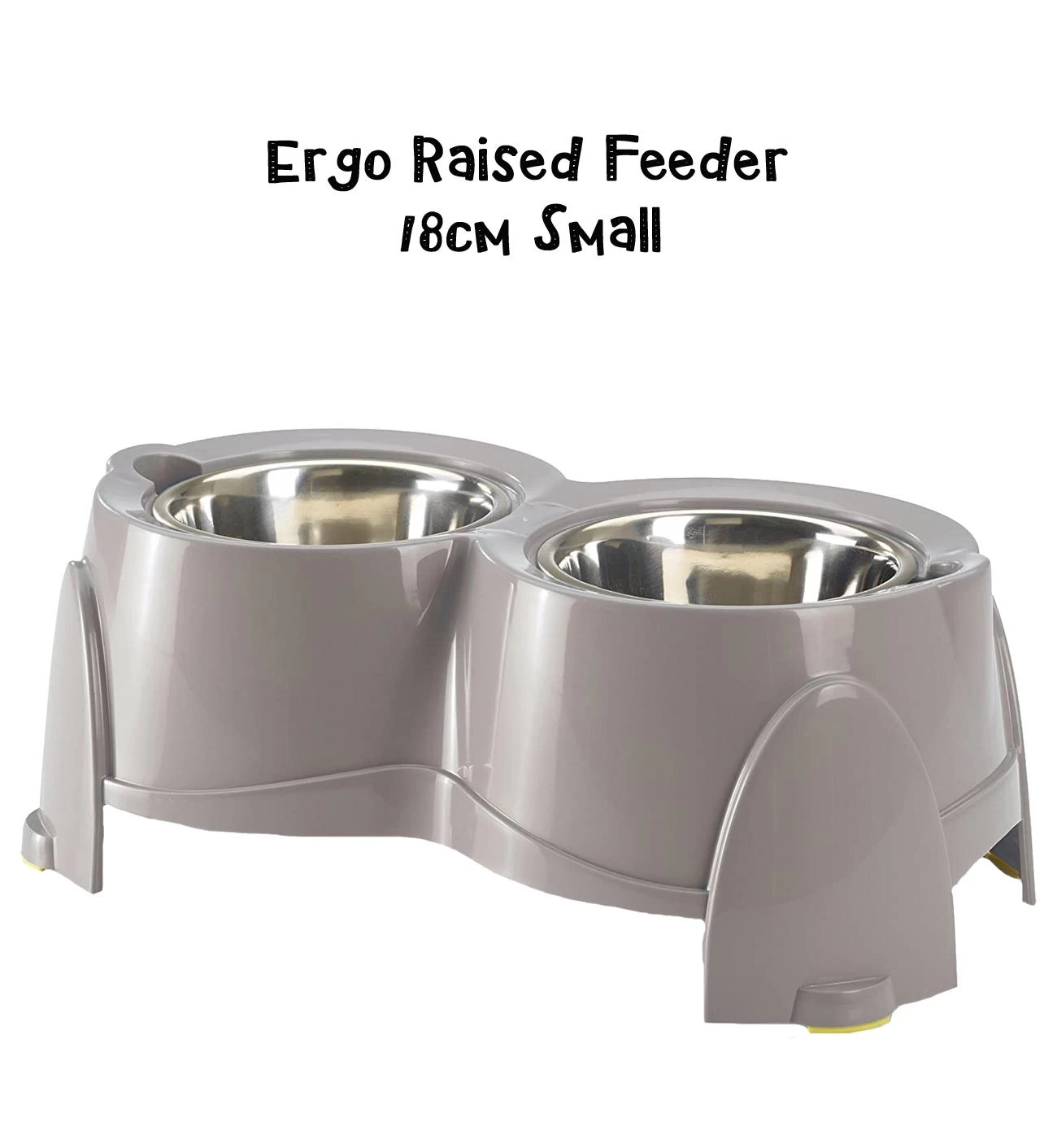 The Ergo Raised Feeder from Savic is great for dogs that struggle with ground feeding or drinking bowls due to joint or posture problems. Consisting of two stainless steel removable bowls, the raised feature can also help with dogs that eat their food too fast and have regurgitation and digestion problems. Easy to clean, either by normal methods or dishwasher. Two different sizes available, 28cm Large or 18cm Small.