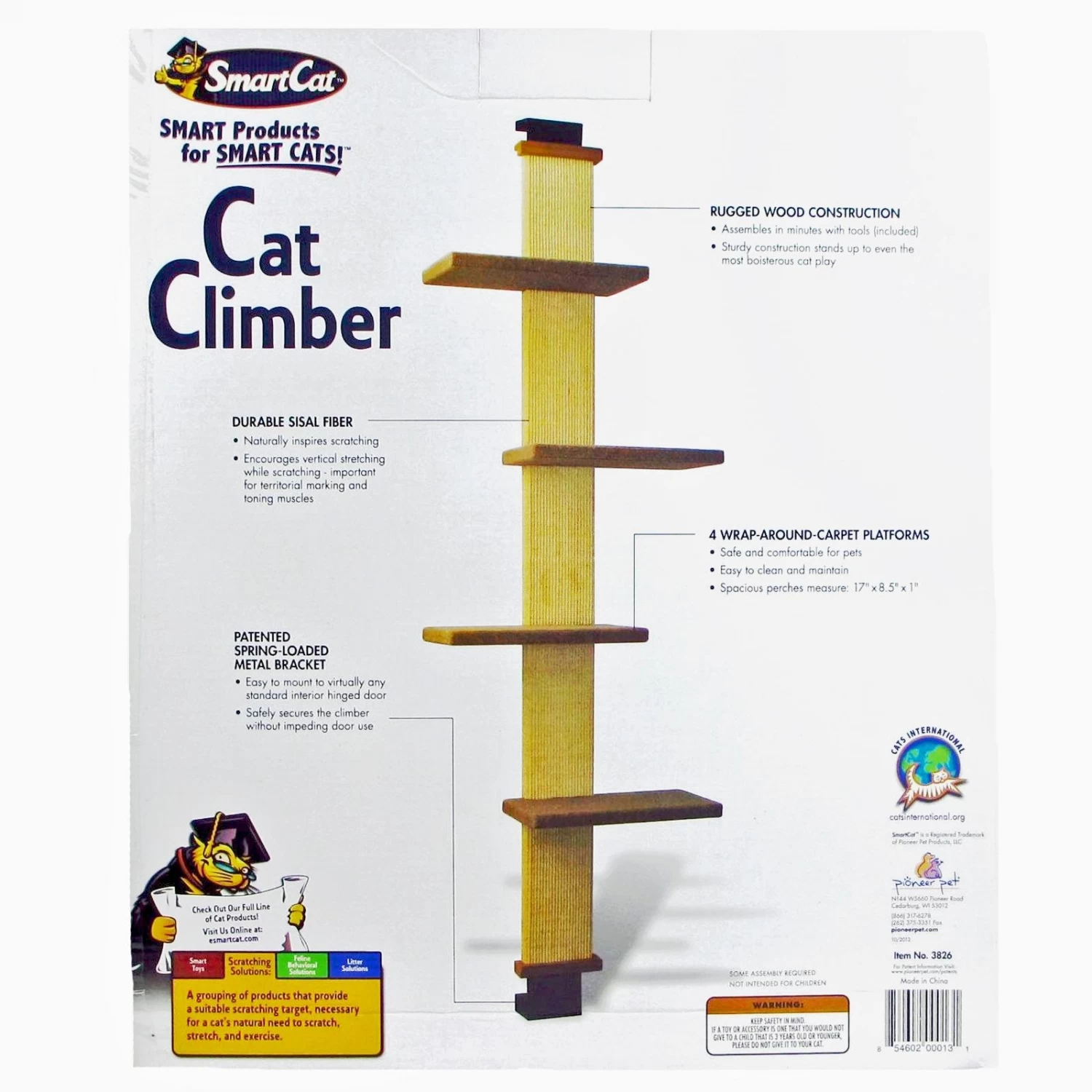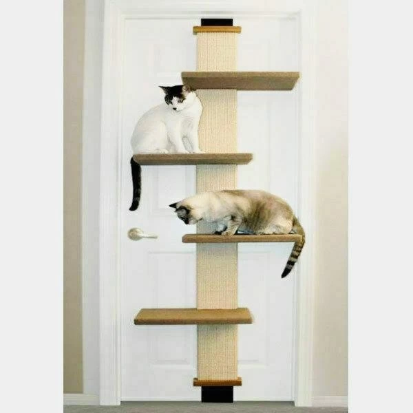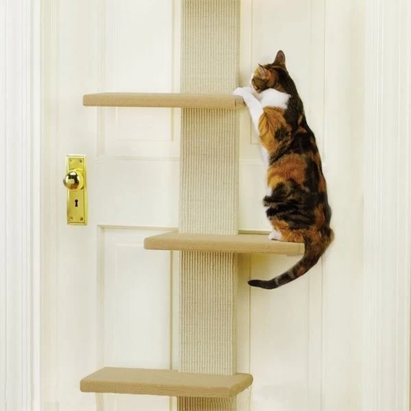 The SmartCat Multi Level Cat Climber is designed to hang on any standard door in your home. A perfect choice for a smaller home with limited space or just as another option to keep your cats busy and entertained. Easily installed, the climber can be moved from door to door in your home as the attachment is spring loaded so if your cat starts to climb in another room, just move the climber! The upright central plate, made from MDF, is covered in top quality natural sisal which is perfect for keeping your cats claws sharpened and healthy plus saving your furniture and the four platforms are covered in soft yet durable material. Please sizing and notes below.