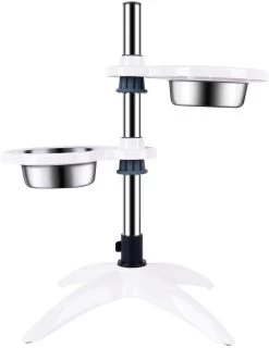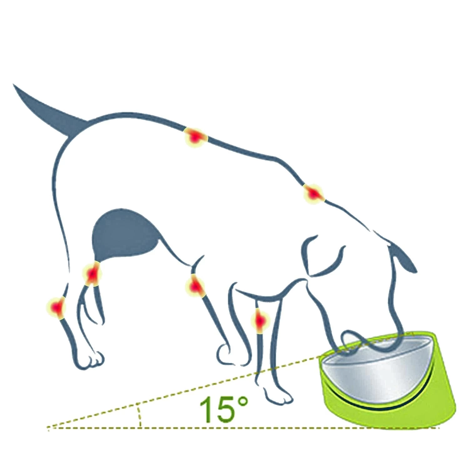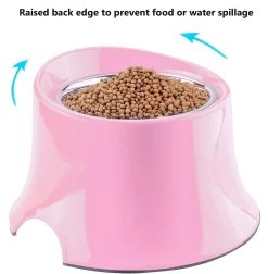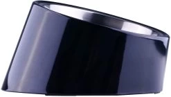 The Super Design 15 Degree Tilted Bowl is designed to help reduce neck pressure and/or joint pain whilst eating or drinking and also encourages a healthy digestive system by elevating and tilting your pets food or water. The base, fitted with an integral rubber ring preventing movement on the floor, is made from Melamine and houses the stainless steel bowl. The stainless steel bowl has a rubber seal on the underside of the outer rim to keep the bowl in place once seated in the base. The 15 degree tilt on the bowl helps the food to stay at the bottom of bowl whilst the high arc rim to the back prevents the content being pushed out over the top or spilled over. Practical and stylish, both the Melamine base and the stainless steel bowl are dishwasher safe. Available in 6 colours & 2 patterns. 3 sizes, Small – Medium – Large. Plus Extra Large in this colour Black for which the Base is 20cm Dia x 27.5cm Depth x 28.5cm Height and the Stainless Steel Bowl is 20cm Dia x 9.5cm Depth.